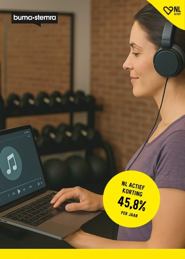 Voor ondernemers in de sector betekent dit dat muziek op de vloer onder Buma valt, terwijl muziek verwerkt in video’s soms ook een Stemra-licentie vraagt. Zo blijft jouw club volledig in lijn met de auteursrechten en kunnen jouw leden blijven sporten met de energie van muziek. Als NL Actief lid profiteer je van scherpe kortingen bij Buma/Stemra, zodat je zorgeloos muziek kunt draaien én kosten bespaart.